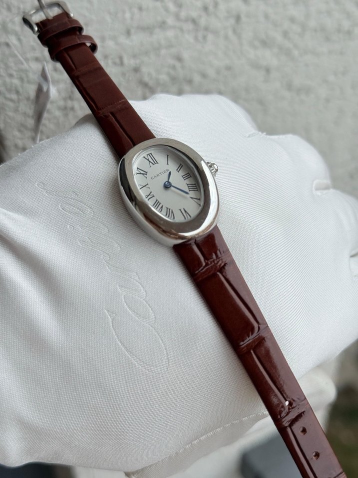 Bej kayışlı, toka detaylı kadın saati, gri oval kadranı ve Roma rakamlarıyla klasik zarafeti çağdaş bir tarzla buluşturuyor. ⌚