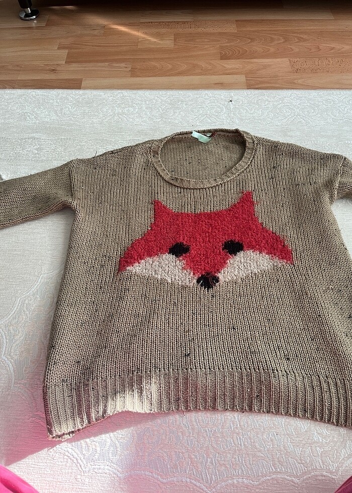 Yazın serinlerde giymek için tilki desenli tatlış kazak