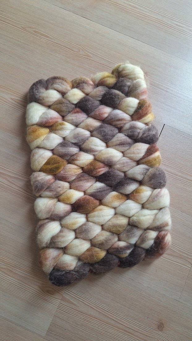 Yumuşak yünden örülmüş, bej ve gri tonlarda, rahat ve bohem tarzda retro dokunuşlu kadın atkısı.