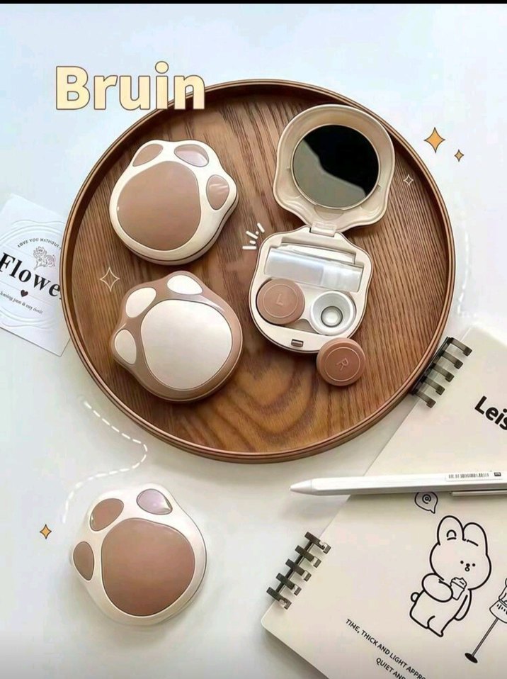 Bej renkte, kedi pati şeklinde, kompakt ve kullanımı kolay bir kılıftır.