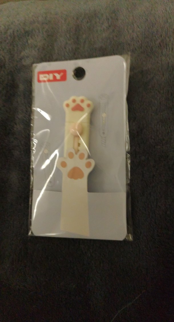 Pastel tonlarda bej renkte, kedi pençesi şeklinde kablo tutucu, kabloları düzenlemek için kullanılır.