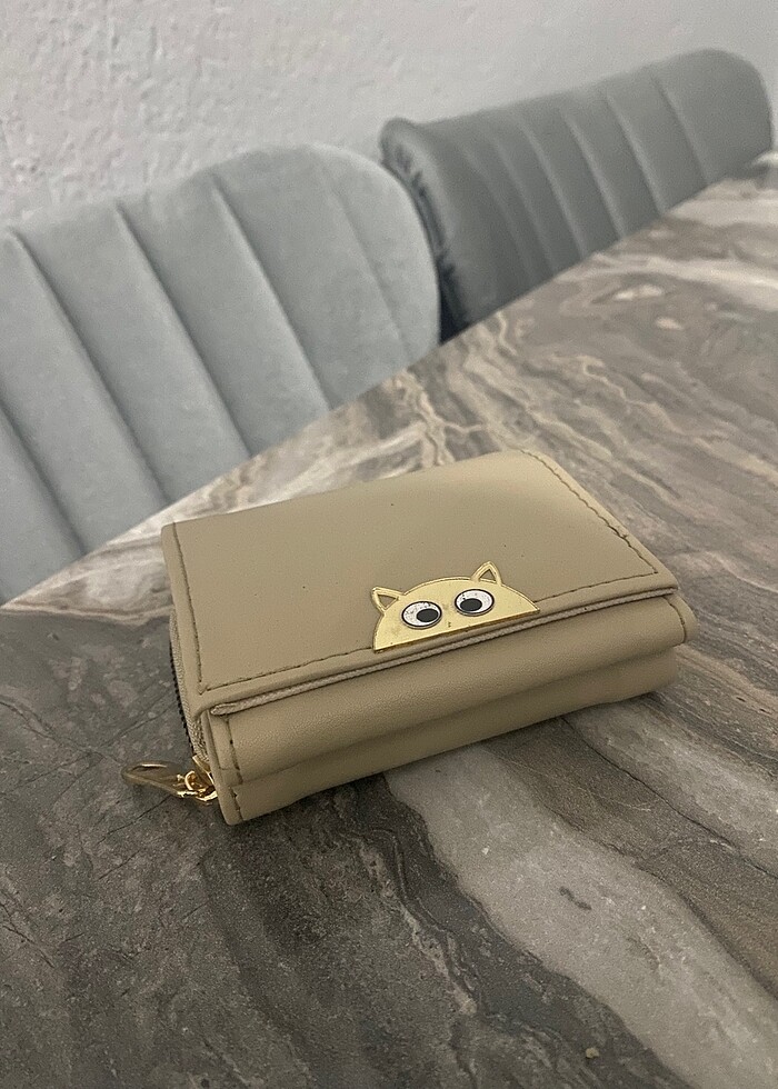 Kedi figürlü bej cüzdan