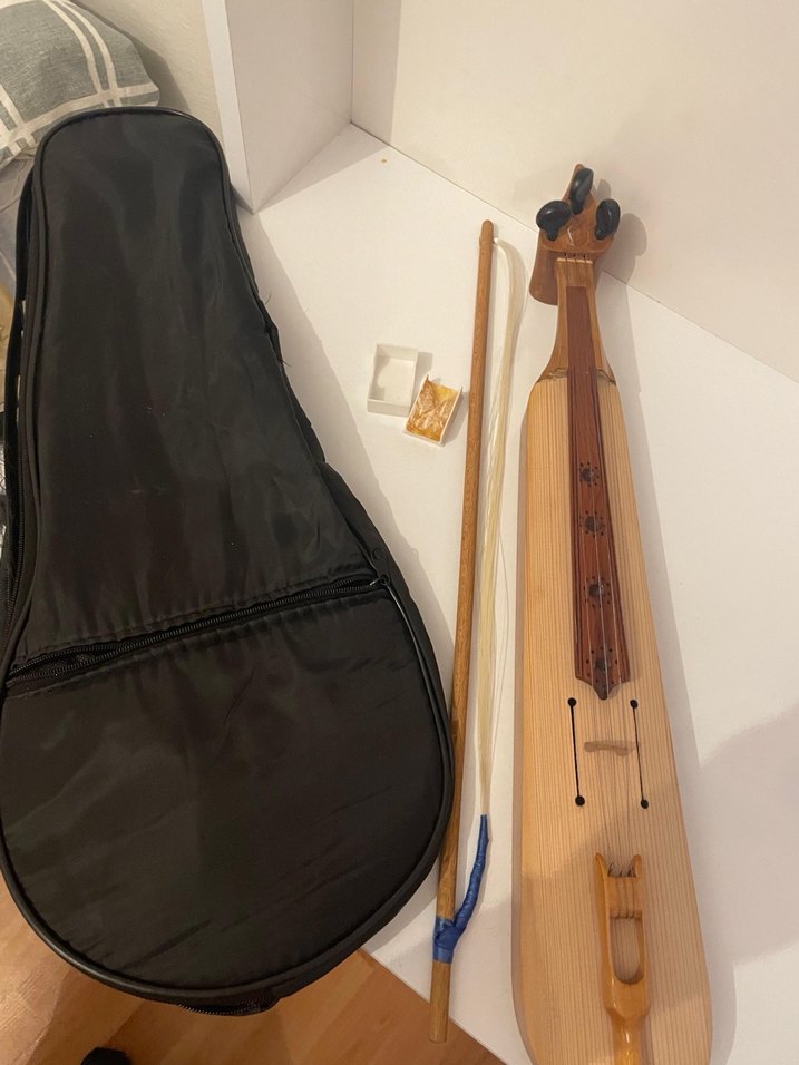 Ahşap yaylı bej kemençe, siyah taşıma kılıfı ve aksesuarlarıyla birlikte. Karadeniz kemençesi, hiç kullanılmadı. Marka etiketi silinmiş ancak sıfır ayarında. Kılıf, yay ve reçine ile birlikte verilecektir. Sorunsuzdur, pazarlık payı vardır.