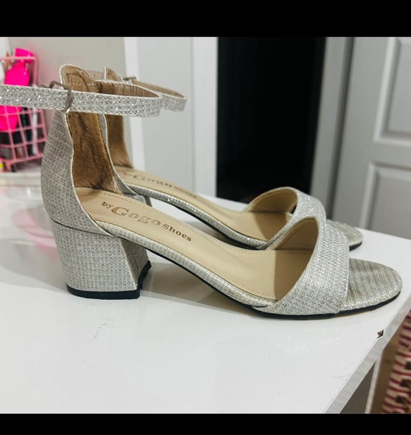 Bej renk, blok topuklu kadın abiye ayakkabı, kemerli ve yılan derisi desenli. Dayanıklı kauçuk malzemeden üretilmiştir, düğünler için uygundur.