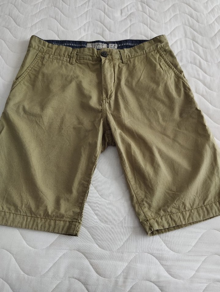 Bej keten kumaştan, kemerli ve bol kesim erkek şort. Kısa boy ve desensiz, günlük rahat sokak stili için uygundur.