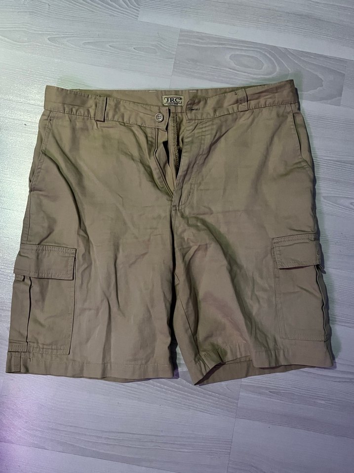 Bej renk, pamuklu kumaştan, kemerli ve bol kesim erkek kısa şort. Sokak stiline uygun, yan ceplidir. Açık hava kullanımı için idealdir.