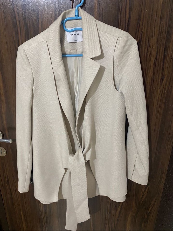 Bej Kemerli Kadın Blazer Ceket 36-38 olur