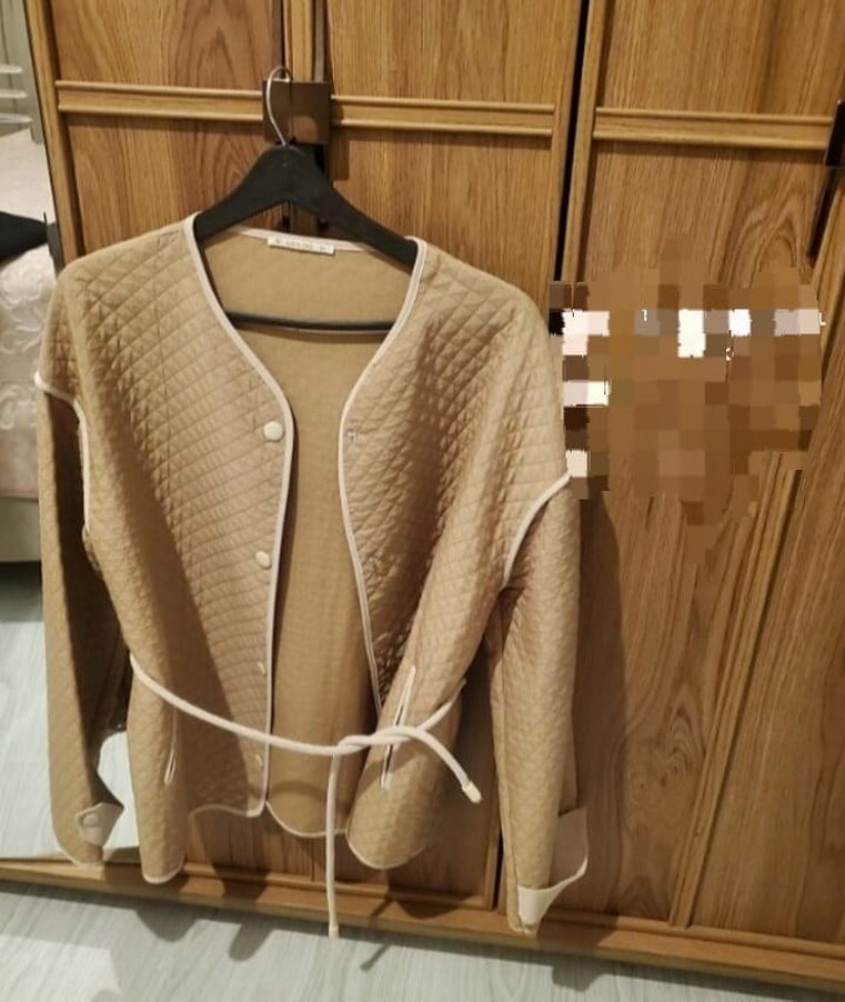 Bej renkli, kemerli, rahat kesim kadın ceket. Yumuşak keten kumaştan, askılı kollu ve yuvarlak yakalı 36-38-40 bedene uyumlu hiç kullanılmadı