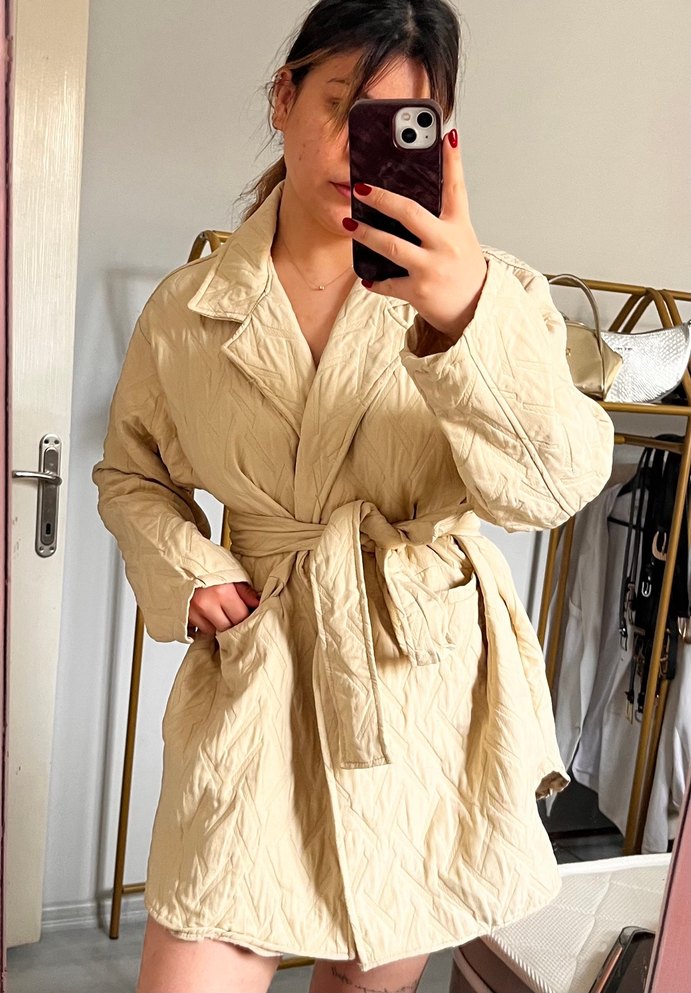 Bej Kemerli Kadın Kapitone Ceket
