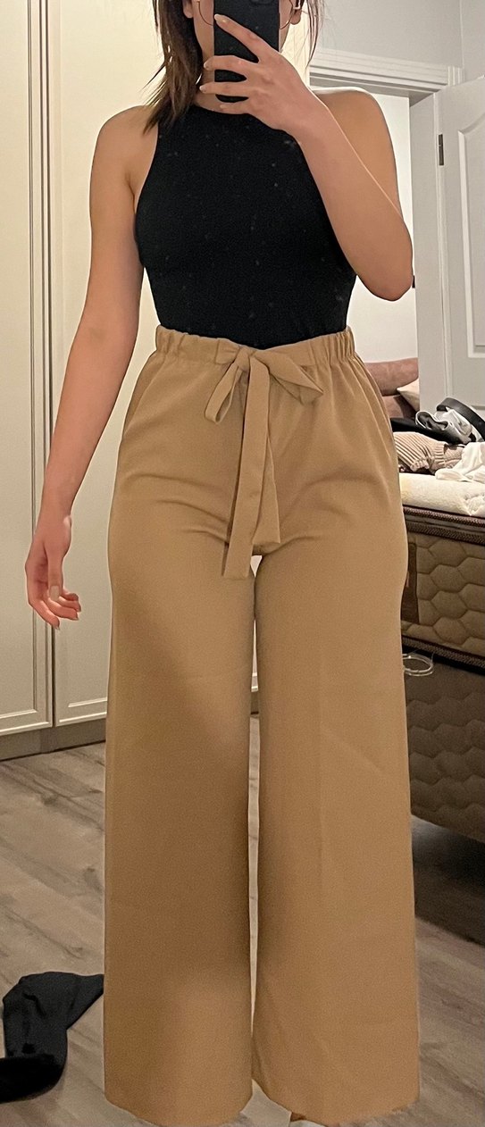 Açık bej renkli, kemerli, midi boy, regular fit kadın kumaş pantolon. Yumuşak ve ipeksi dokusu ile günlük şıklık sağlar. ✨