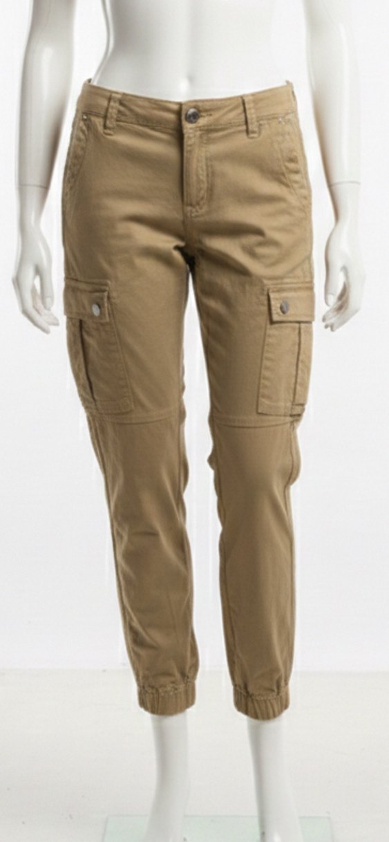 Bej renkte kemerli ve cep detaylı, bol kesim kadın kumaş pantolon. Yumuşak sentetik kumaştan, günlük sokak stili için uygun.
