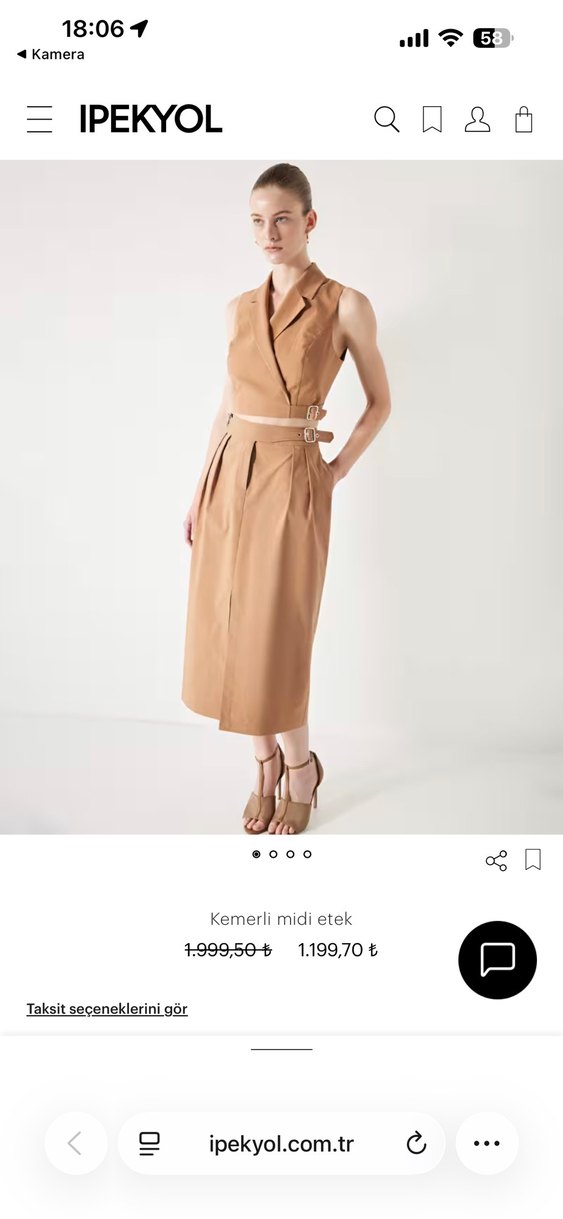 Bej Kemerli Kadın Midi etek