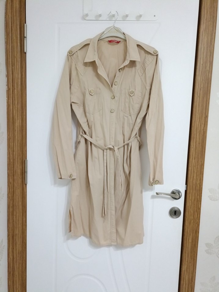 Bej Kemerli Kadın Trençkot
