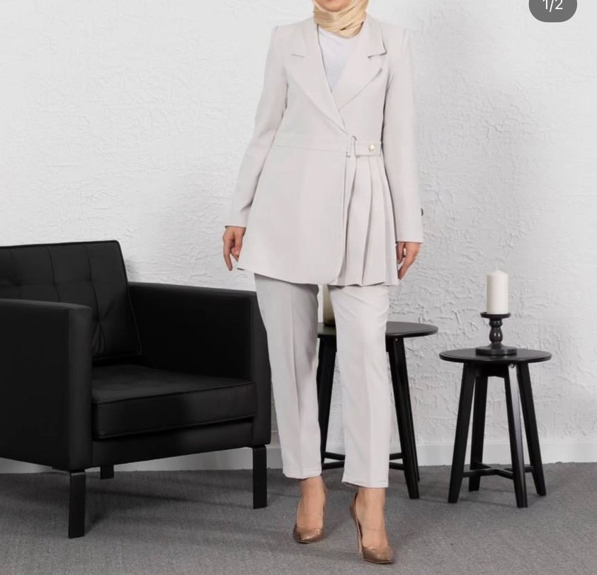 Bej renkli, kemerli uzun ceket ve pantolondan oluşan kadın takımı. Regular fit, strappy kollu ve klasik şıklık için uygundur. Kumaşı sentetiktir, desensiz ve çağdaş tasarıma sahiptir.