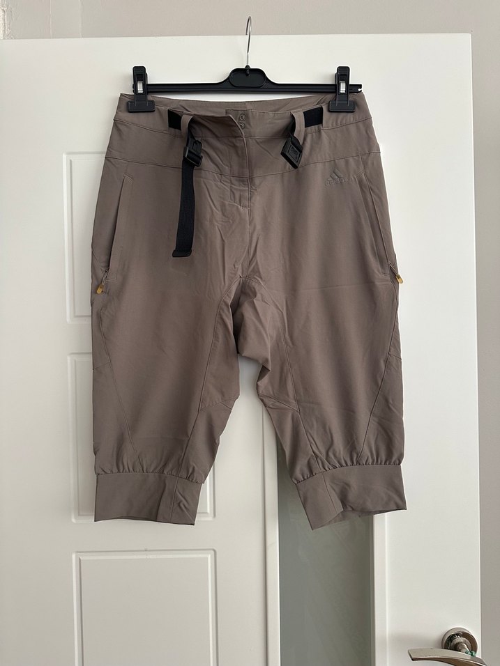Bej renkli, kısa boylu, bol kesim kumaş pantolon. Kemer detayı ve sentetik kumaş kullanılmıştır. Sokak stili ve açık hava için uygundur. ️