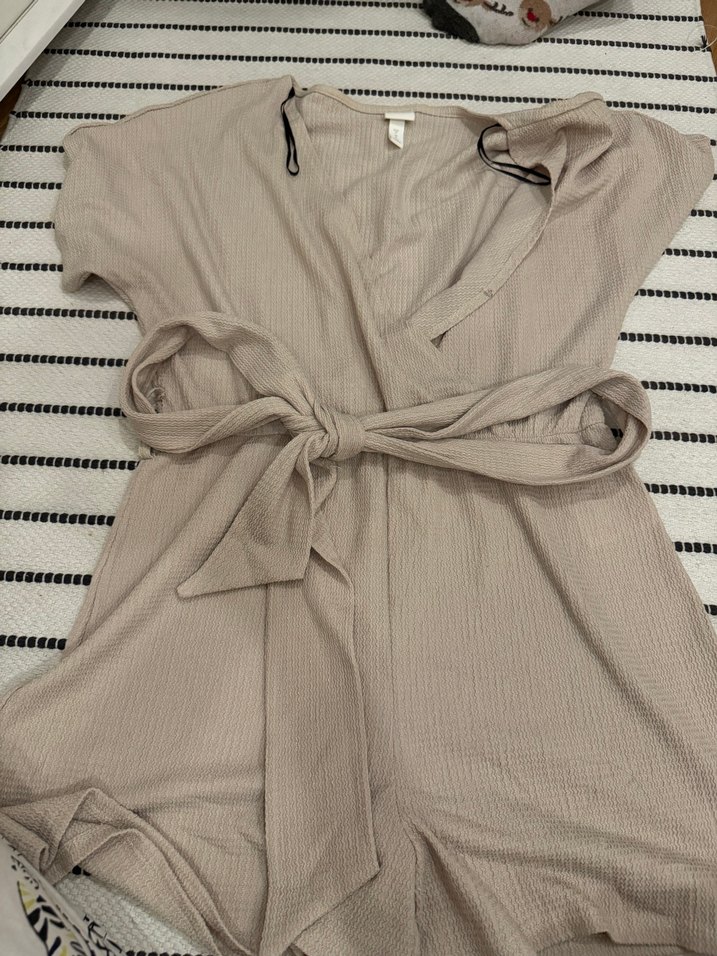 Bej Kemerli Kısa Kollu Kadın Tulum