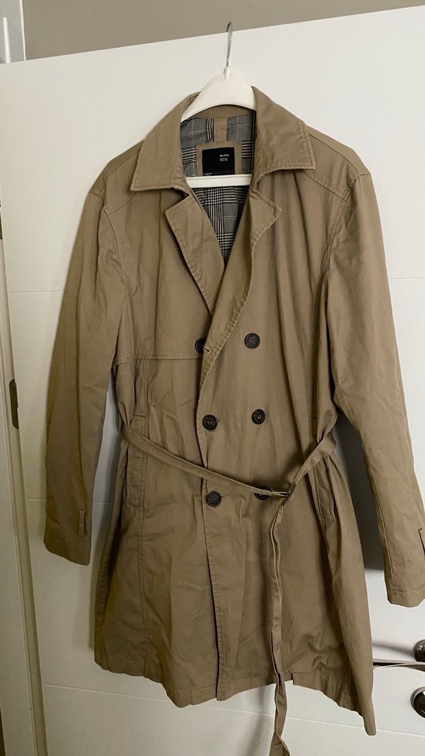 Orijinal marka Bej renkli, kemerli, normal boy midi erkek trençkot. Keten kumaştan, notched lapel yaka ve regular fit. Günlük kullanıma uygun, sokak modasına uygun