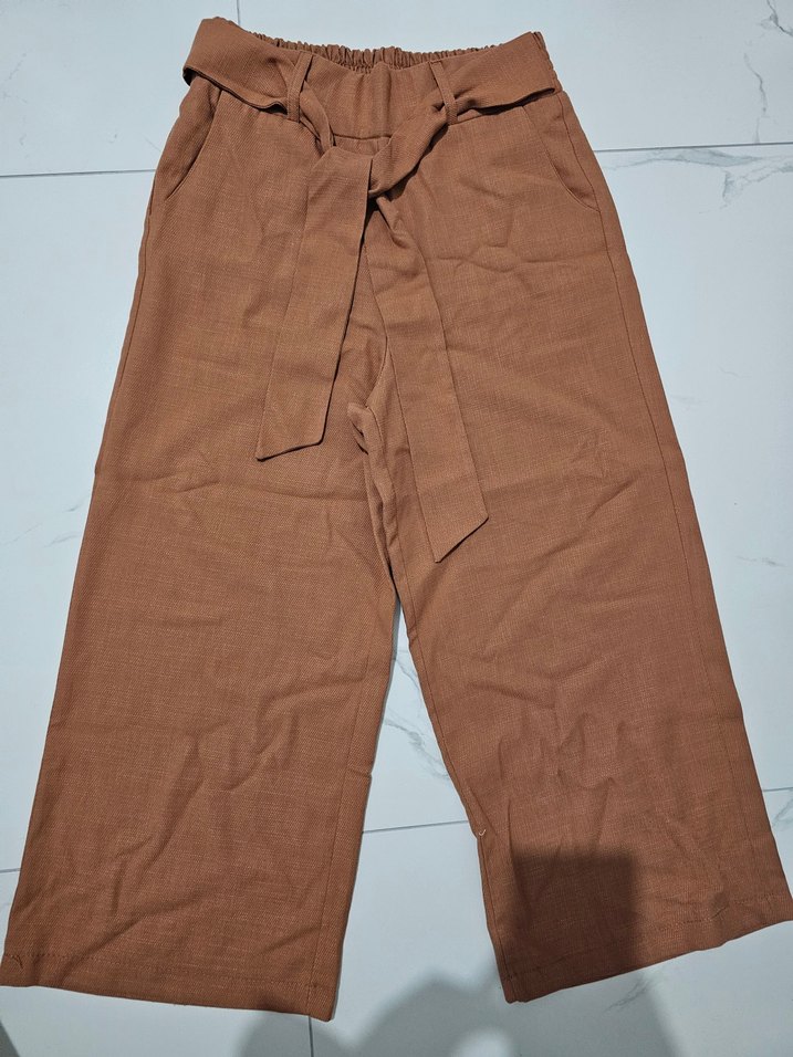 Bej Kemerli Midi Kadın Keten Pantolon