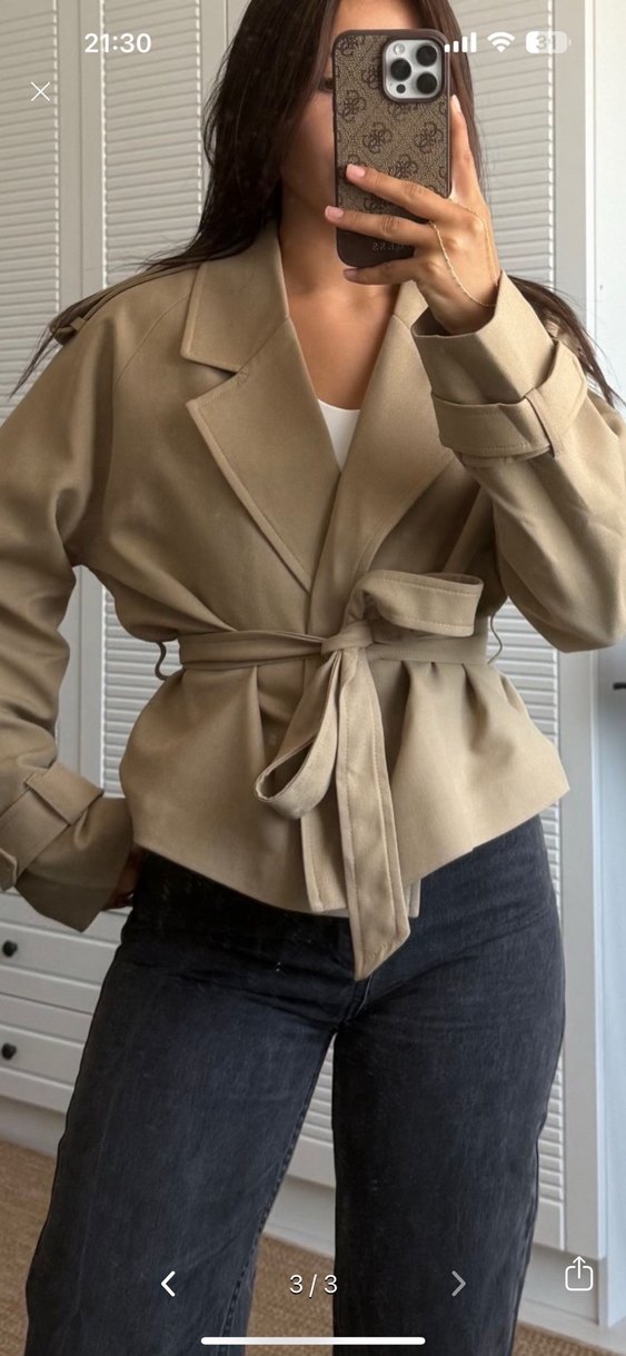Bej Kemerli Midi Kadın Trençkot