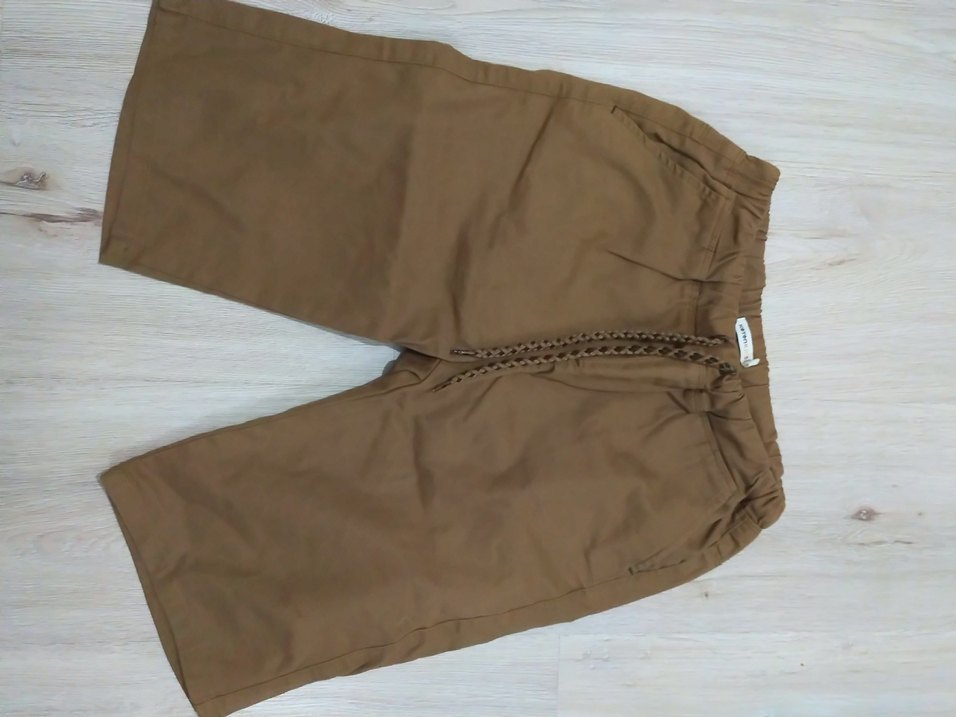 Parlak görünümlü kumaş Şort kemerli ve bol kesim. Midi boyda, rahat sokak stili için uygundur. ✨