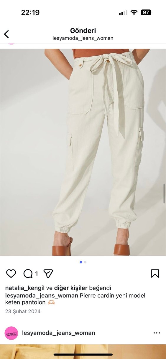 Bej renkli, pamuklu kumaştan, rahat kesim ve kemerli kadın pantolon. Midi boy ve lastikli paçalarla günlük sokak stiline uygun.beden mevcut