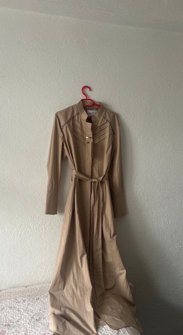 Bej Kemerli Uzun Kadın Trençkot