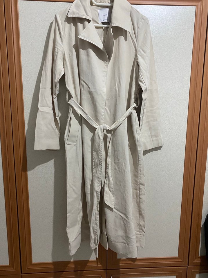 Bej renkli, uzun keten trençkot, kemerli ve yakası kesik detaylıdır. Uzun kollu, bol kesimdir, sade ve günlük kullanıma uygundur.