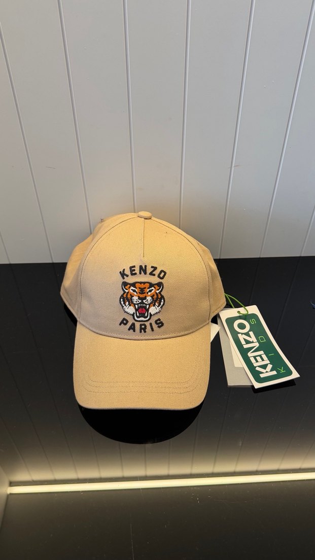 Bej renkte, nakışlı kaplan logosu ve kemerli tasarıma sahip, yumuşak ve sıcak kumaştan Kenzo Paris şapkas. Trendy casual sokak stili için uygundur.
