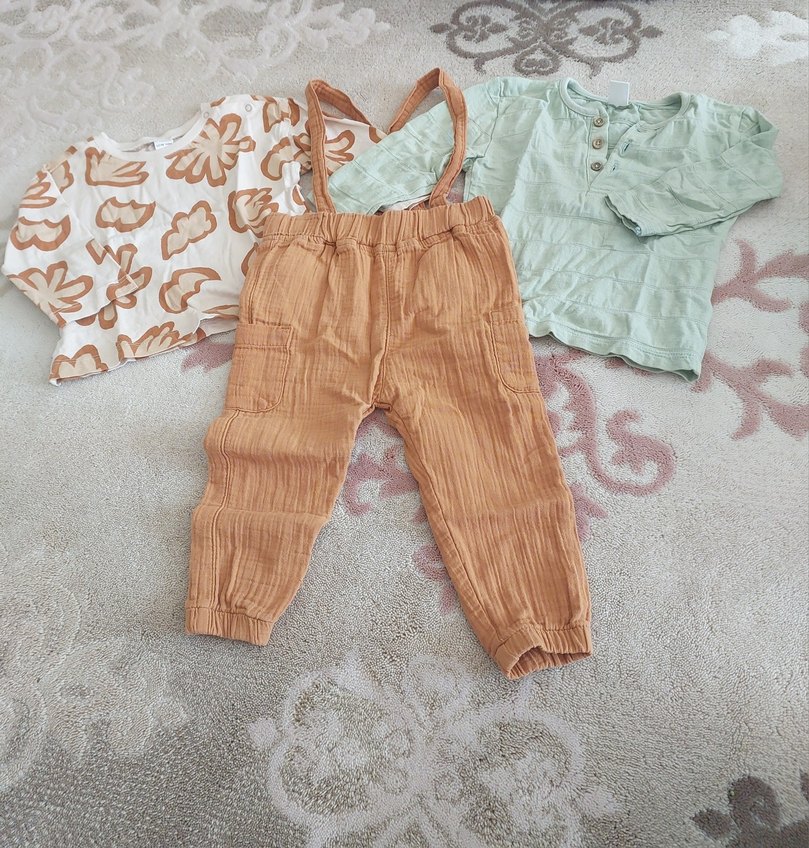 Bej renkte keten kumaştan, askılı ve tokalı bantlara sahip bol kesim erkek tulum. Desensiz ve bohem tarzda yumuşak dokulu. Tulum takımı 12-18 yeşil 18-24 ay uyumlu ürünler yeniden farksızdır