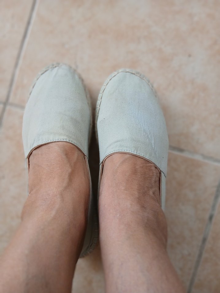 Bej keten malzemeden yapılmış, dolgulu topuklu kadın espadril. Minimalist ve sade tasarımıyla günlük kullanıma uygundur, rahat ve şık bir görünüme sahiptir.
