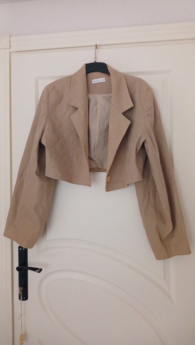 Bej Keten Düğmeli Kadın Blazer Ceket