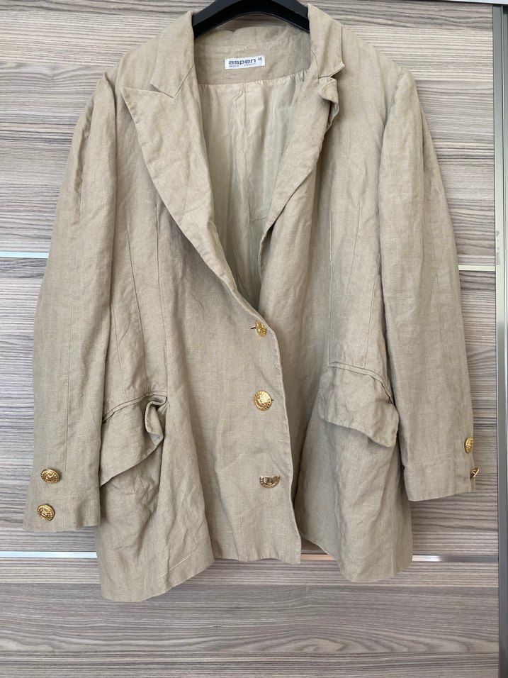 Bej Keten Düğmeli Kadın Blazer Ceket