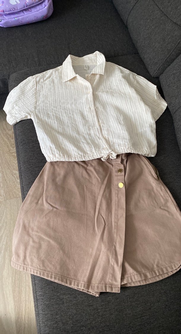 Bej renkli keten kumaştan, kısa kollu, düğmeli ve yakalı, rahat kesim kadın gömleği. Günlük kullanıma uygun sade tasarım.