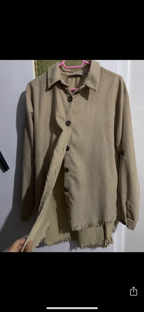 Bej keten, düğmeli, uzun kollu, kısa kesim ve salaş fit kadın gömlek. Notlu yaka ve salaş tarzıyla günlük kullanıma uygun. Sorunsuzzz