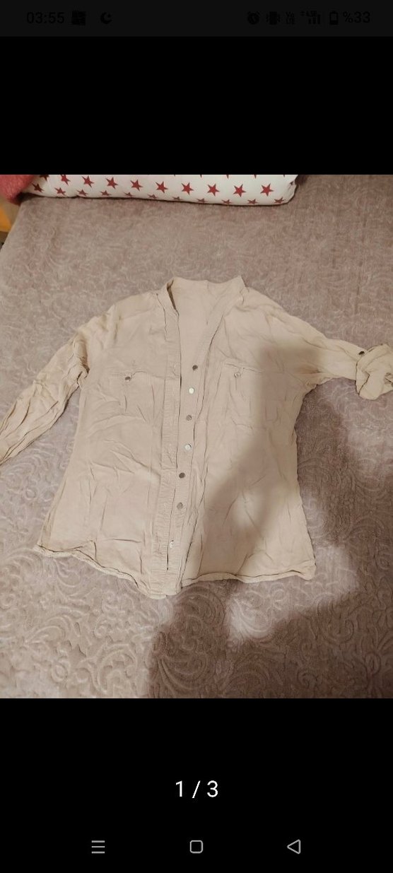 Bej keten kumaştan, düğmeli, yakalı ve uzun kollu kadın gömleği. Salaş kesimi ve normal midi boyuyla gündelik kullanıma uygundur. Bohem tarzıyla trend görünüm sağlar.