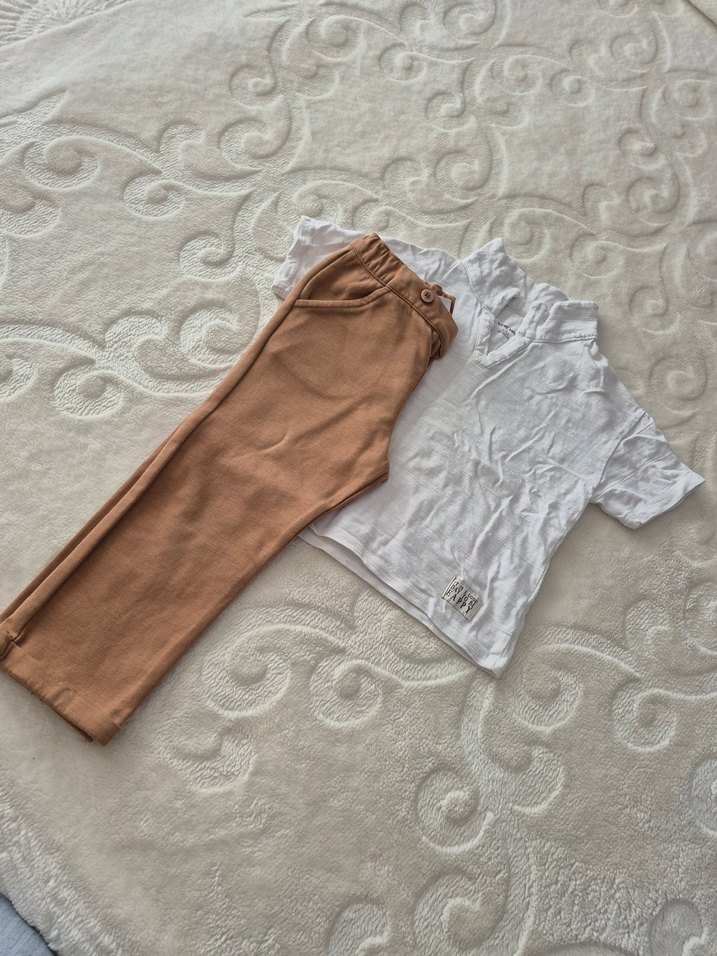 Bej Keten Erkek Bebek Kısa Kollu Takım
