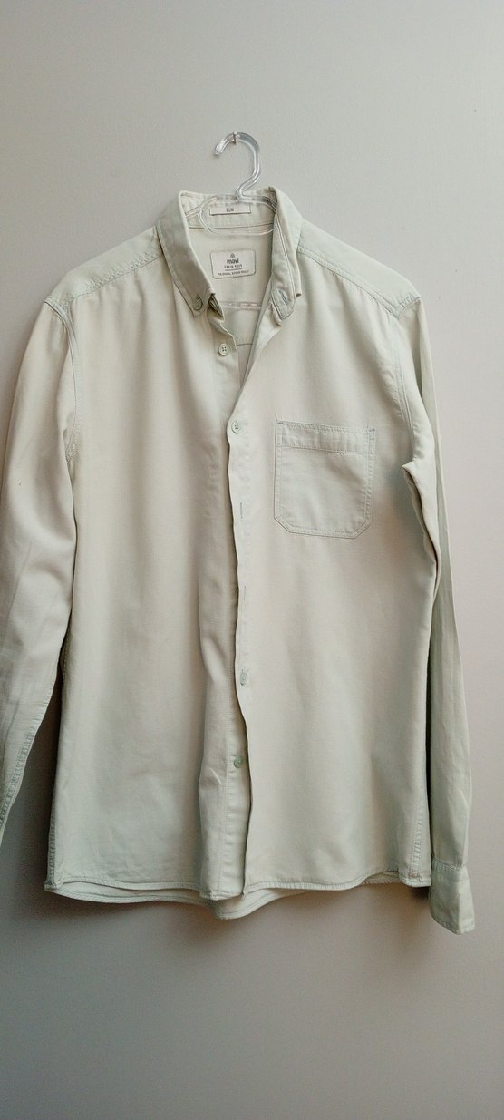 Bej renkli keten erkek gömlek, düğmeli ve uzun kolludur. Salaş kesimi ve yakalı tasarımıyla günlük rahat kullanıma uygundur. Tek cep ve desensiz modeldir. 4 ve 5 fotoğraf da dikkatli bakarsanız küçük bir ip kaçıgı var tek bir yerde var ince bir dikişle gözükmez güzel ve temiz gömlek tir