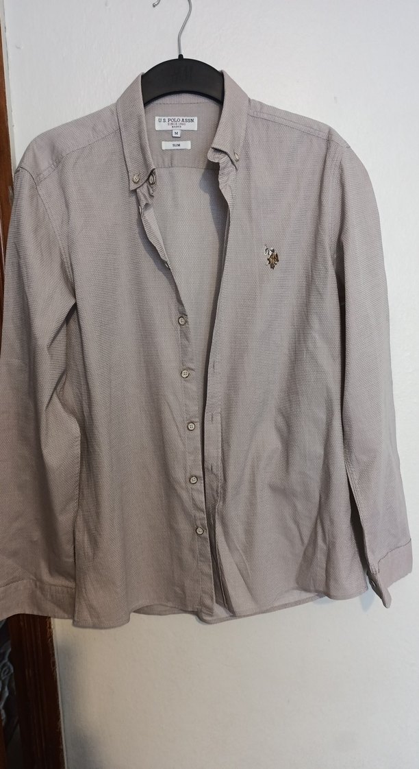 Bej renkli, keten kumaştan yapılmış erkek gömleği. Uzun kollu, düğmeli ve yakası açık. Rahat kesimiyle günlük sokak stiline uygun.