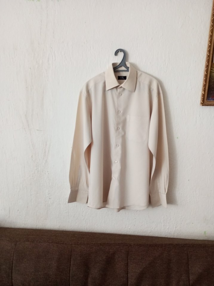 Bej keten kumaştan üretilmiş, düğmeli ve uzun kollu erkek gömleği. Minimalist, desen içermeyen tasarımıyla ofis için uygundur. ☁️