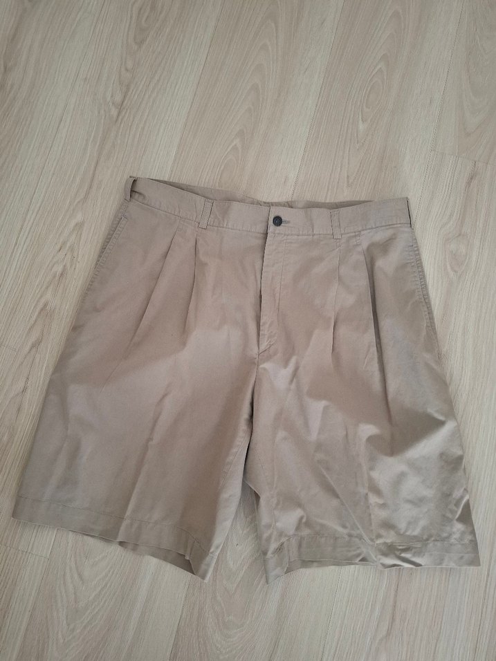Bej renkte keten kumaştan yapılmış, bol kesim ve pileli detaylı erkek mini şort. Günlük kullanıma uygun, rahat ve trend sokak stiline uyum sağlar.