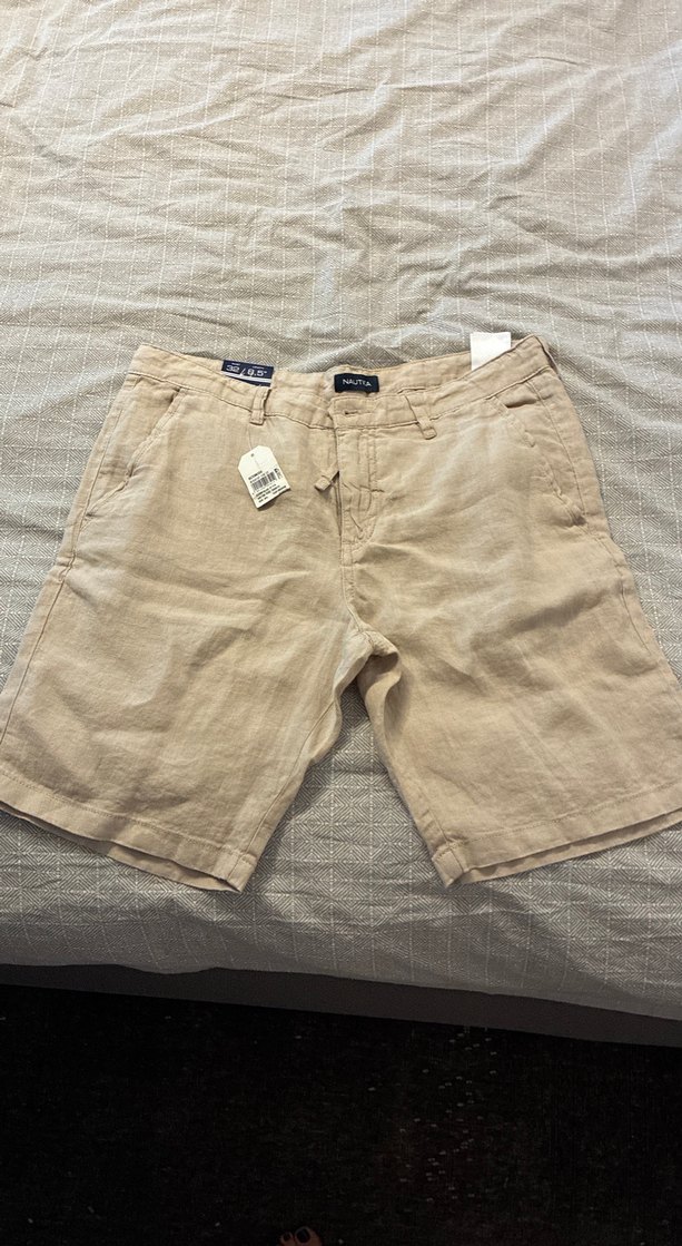 Bej keten erkek mini şort, rahat ve günlük kullanım için hafif yapıda. Düz renk ve regular fit ile sokak modasında zahmetsiz şıklık sunar.