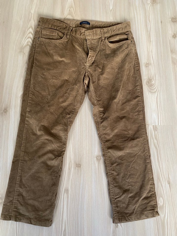 Bej keten kumaştan, düğmeli ve regular fit kesime sahip erkek pantolon, günlük ve sokak stiline uygun. Bel ölçüsü : 46 cm’dir paça boyu ise ; 87 cm’dir