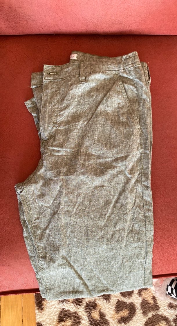 Bej Keten Erkek Pantolon Düğmeli Rahat Kesim