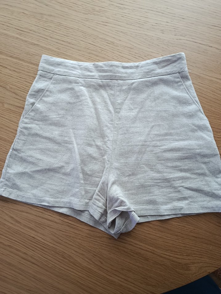 Bej Keten Hamile Mini Şort