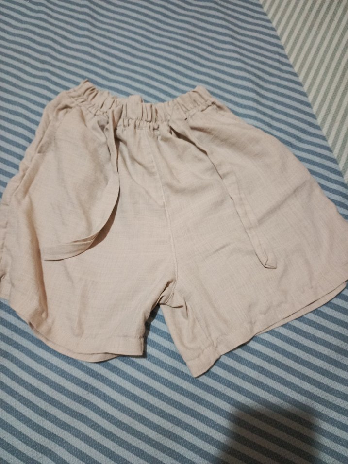 Bej keten hamile şortu, rahat kesimi ve mini boyu ile günlük kullanıma uygun, sade ve rahat bir tarza sahiptir.