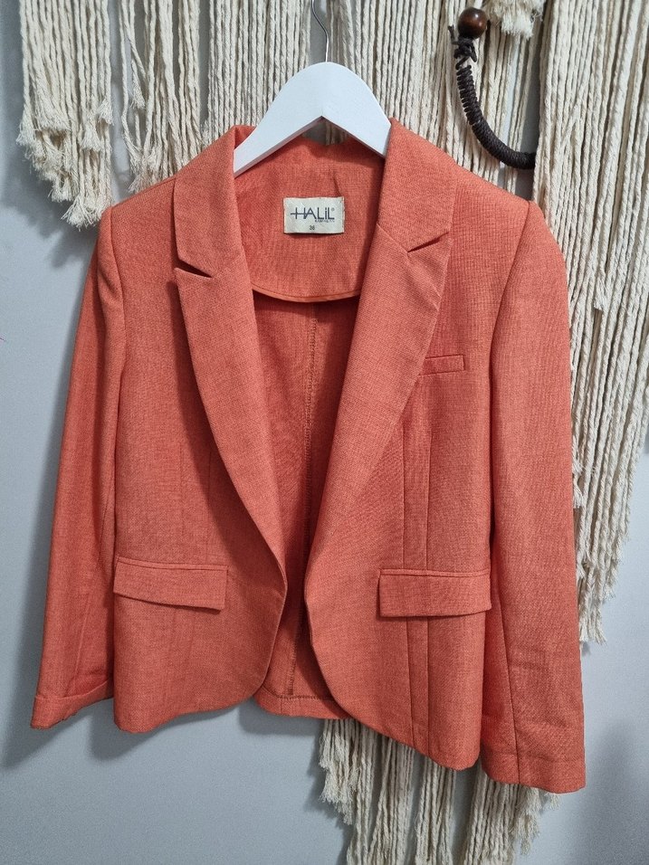 Bej Keten Kadın Blazer Ceket