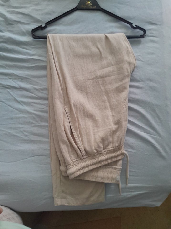 Bej Keten Kadın erkek fark etmez Salaş Pantolon