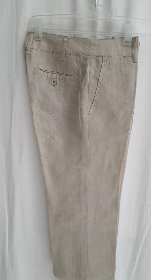 Bej Keten Kadın Kumaş Pantolon Midi Boy