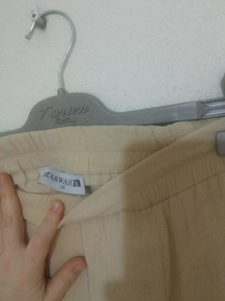 Bej Keten Kadın Pantolon