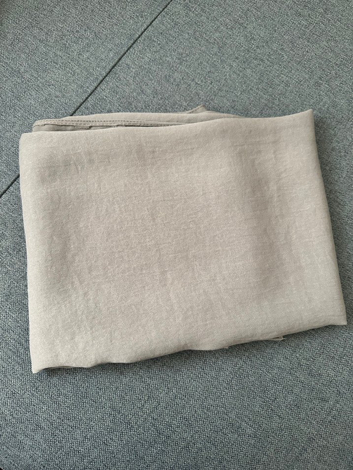 Bej keten kumaştan kadın şal, minimalist ve bohem tarzıyla rahat, doğal dokunuş sunar.